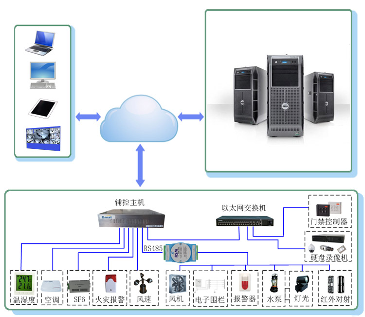 本系統(tǒng)通過對各種輔助生產(chǎn)系統(tǒng)的整合、優(yōu)化,并通過監(jiān)測、預(yù)警和控制三種手段,實現(xiàn)智能變電站無人值守下的分布式遠(yuǎn)程監(jiān)管,為變電站的科學(xué)管理和安全生產(chǎn)提供可靠的技術(shù)保障。